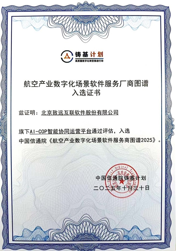 此次入选《航空产业数字化场景软件服务商图谱2025》,既是荣誉,更是责任。未来,致远互联将继续紧跟国家发展战略,深化航空与低空经济布局,加快核心技术攻关与场景创新,以AI-COP平台为核心引擎,联合产业链伙伴共建开放共赢的数字化生态,为中国航空事业迈向更高水平注入强劲的数字动能。
