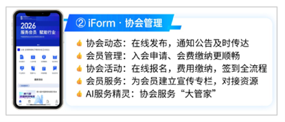 为行业商会、校友会、公益组织搭建移动官方门户,覆盖协会动态、会员入会、会费缴纳、活动管理、会员宣传,结合AI服务精灵“大管家”,提升服务效率。