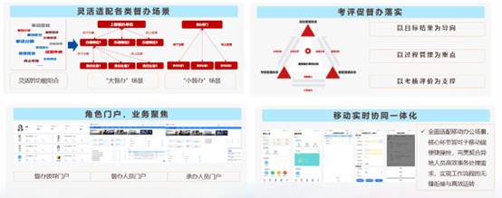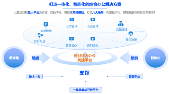 致远互联的整体方案中,公文、会议、督办并不是孤立存在的,它们还可以与合同、投资、科技、审计、资产、采购等更多业务场景相互联动,进一步打通从管理部署到业务执行、从过程监管到数据分析的全链路。