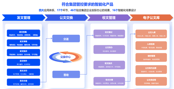 •统一公文标准:支持集团统一发文模板、文种规范、审批规则、文号规则和交换机制。