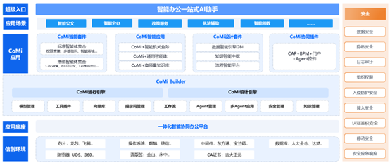 同时,结合AI-COP的智能运营能力,集团客户还可以持续构建面向不同岗位、不同场景的智能应用,进一步提升制度执行效率、会议决策效率、任务督办效率和管理分析能力。