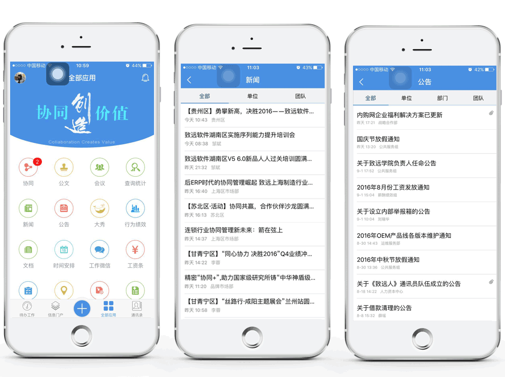 组织及个人的移动入口,新闻,公告,日程事件,时间安排,