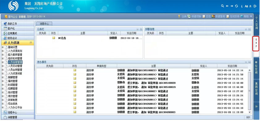 - 页签方式导入ERP系统,与致远协同办公平台形成统一办公桌面。